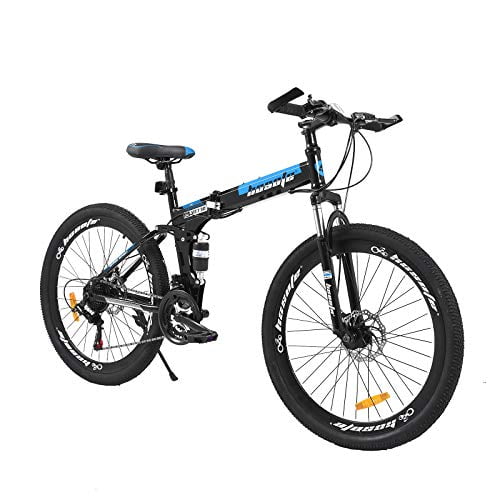 Hosote 26 Inch Full Suspension Folding Mountain Bike 21 Speed High Tensile Carbon Steel Frame Mt Dual Disc Brake Mountain Bicycle For Men And Women Walmart Com